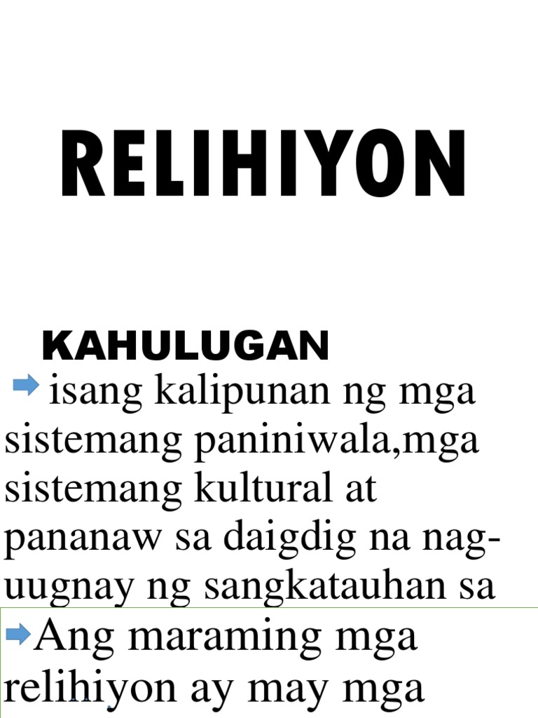 Ano ang ibig sabihin ng salitang relihiyon. Ang pananampalataya ay ang tunay na paniniwala at tapat na pusong dapat taglayin ng mga tao kapag hindi nila nakikita o nahahawakan ang isang bagay kapag ang gawain ng Diyos ay hindi naaayon sa mga pagkaintindi ng tao kapag hindi ito kayang abutin ng. Ang tungkulin ay tinawag at kinailangan niyang iwanan siya. 20 Ang pag-ibig sa iba gaya ng pag-ibig natin sa ating sarili ay nangangahulugan na ituring natin ang iba kung paano natin nais na ituring nila tayo at pakitunguhan natin ang iba kung paano natin nais na pakitunguhan nila tayo.