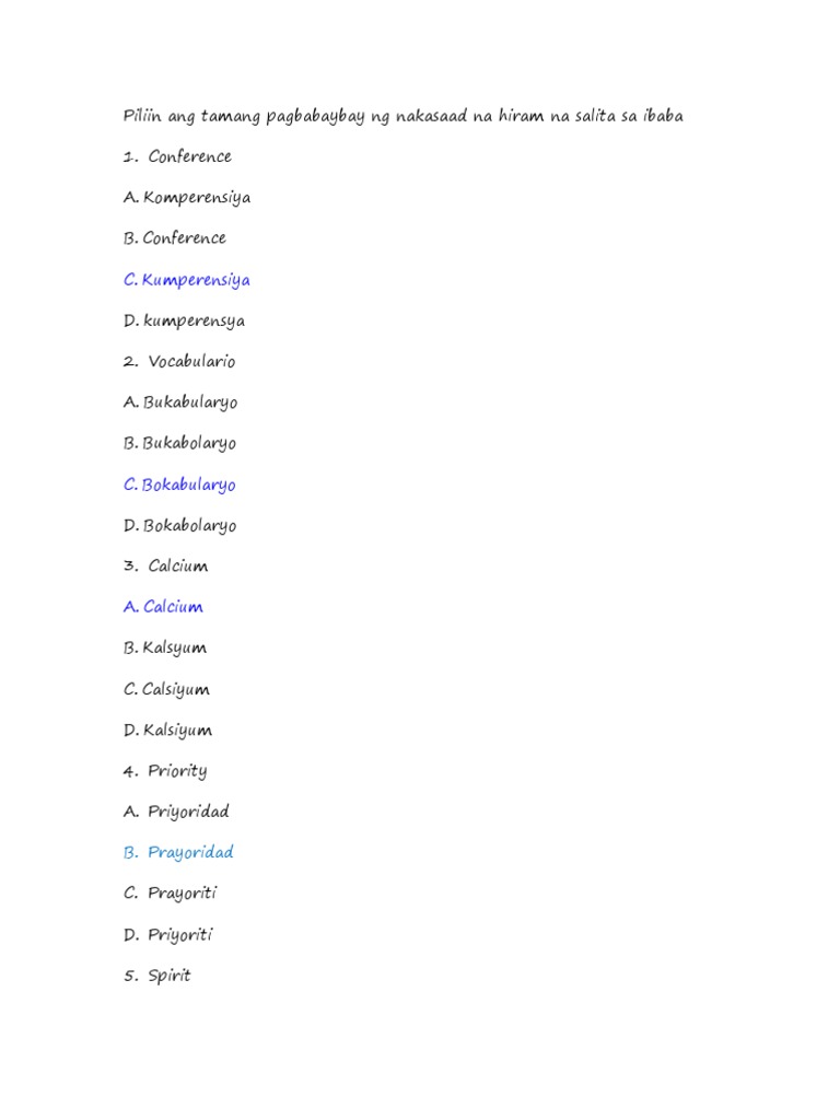 Piliin Ang Tamang Pagbabaybay Ng Nakasaad Na Hiram